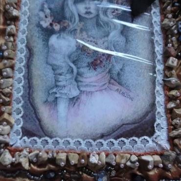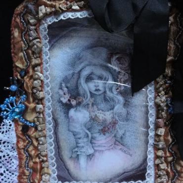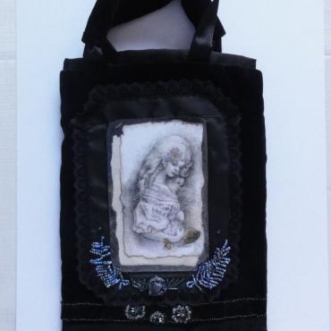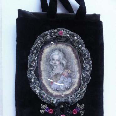 My bags bear my fingerprints, and not only because they are hand-made. When making them, I always try to achieve unique decorativeness, and each one of them also contains my original drawing. The drawings inspired by beautiful faces of real, human “baby dolls” are dominant on the bags. They are placed in see-through pockets, are removable and laminated. To embellish the frames of the drawings, I often use Japanese beads MIYUKI and TOHO, Czech beads by Preciosa, vintage beads, fabric, lace, delicate materials and semi-precious stones.